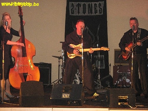 There just was a very low attendance... Only a handful of quiffs and a couple of friends of the organiser had turned up. Yet he'd made publicity and spread around flyers for weeks in advance. Was it too cold to go out, or was everybody at the festival in Hof Ter Lo ? Hard to believe. Anyway, the first band of the evening, The 2-Tones, kicked off around 10 pm.