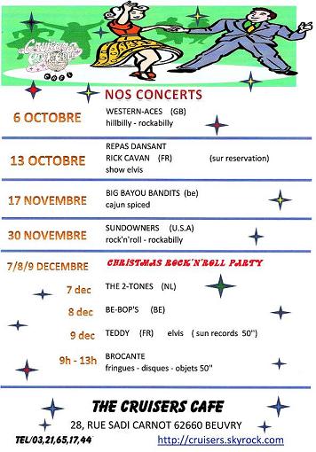Here's the program for the upcoming concerts at the Cruisers Café in Beuvry, France
