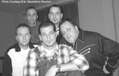 If you've never heard of "Moonshine Reunion", shame on you!! ... or haven't you been following "the adventures of the ex Fab Frankies"? This 5 headed (Belgian) band, 4 ex "Fabulous Frankies" strengthened with the guitar picking of "Bart De Boeck" (ex Swampdolls), sure knows how to rock. Their demo is a real beauty, a mix of swamp-blues, rockabilly and hillbilly. Years of stage experience, a huge musical knowledge, and a healthy attitude results in a hell of a show.